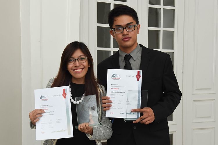 Le produit imaginé par l'équipe gagnante, "Energy Patch", est une technologie révolutionnaire de nettoyage qui améliore la brillance et les résultats de nettoyage tout en convertissant l’énergie générée par les mouvements du corps en puissance électrique. Le deuxième prix a été remis à Marco del Valle et Christine Darla Bautista de l’Université des Philippines pour leur idée "Buchstrahl". Voici leur vision : un vernis qui protège les surfaces et neutralise les polluants tout en utilisant l’énergie solaire. L'équipe italienne de Tommaso Bressa et Iva Mladenovic de l’Université de Bocconi accède à la troisième place du concours avec un projet « Cyanofix » de colle médicale.
